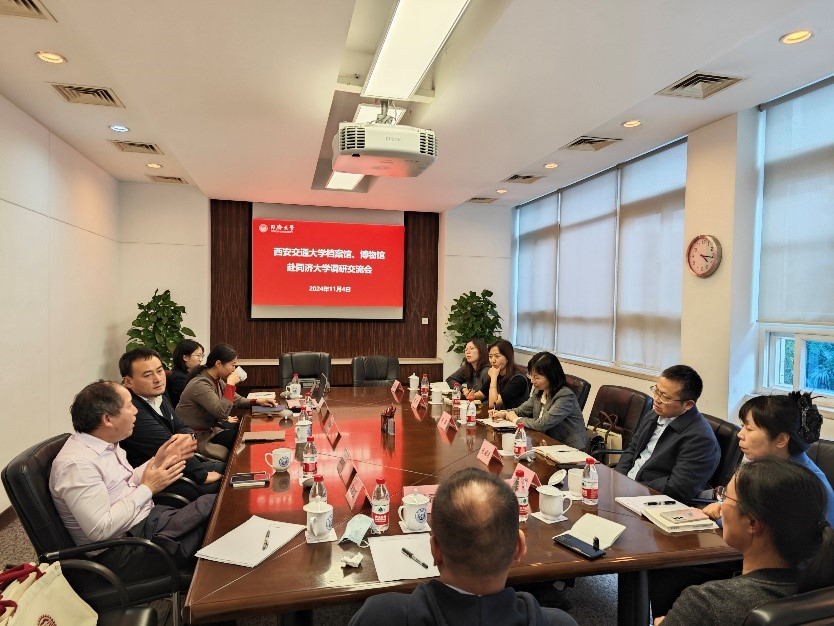 双方在逸夫楼213会议室开展交流座谈会,围绕档案征集、校史资料编研、传播育人以及校史馆建设等多个维度展开了深入交流。王晶晶介绍了馆内的基本情况,章华明分享了同济大学档案征集与校史资料收集工作的经验,着重介绍了如何深化档案资源的开发利用,增强其教育功能的策略与实践。档案馆馆长邹晓磊介绍档案资政育人工作的做法。西安交通大学档案馆、博物馆的同仁们也分享了他们在档案、校史征集和利用过程中的成功案例与前沿思考。