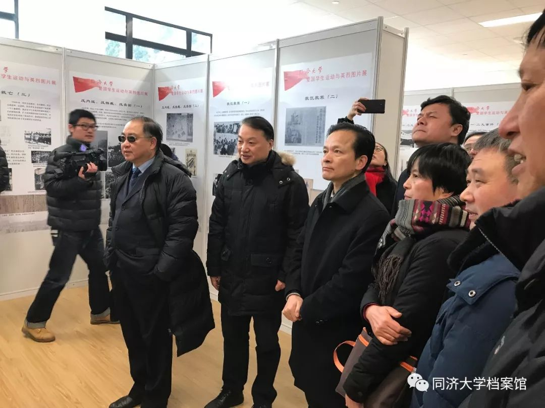 刘刚和江波共同为展览揭幕。马锦明在揭幕仪式讲话中说:同济大学有着光荣的革命传统,自建校以来,为了国家的前途和命运,同济师生始终站在争取民族独立、人民解放和反对压迫的斗争最前列,为中国革命和建设事业作出了卓越的贡献。1948年1月29日,同济大学地下党总支领导了轰轰烈烈的“一·二九”爱国学生运动,反抗国民党暴政,高举“反迫害,争民主”的旗帜,与反动派英勇斗争,为迎接上海的解放做出了贡献,在上海、中国学生爱国运动史册上留下了光荣的一页。今天是同济大学“一·二九”事件70周年纪念日,我们在“一·二九”大楼举行“同济大学爱国学生运动与英烈图片展”,就是为了弘扬同济先辈们为国家和人民利益英勇奋斗和担当的精神。揭幕仪式后,各位领导和师生前往展厅观展。
