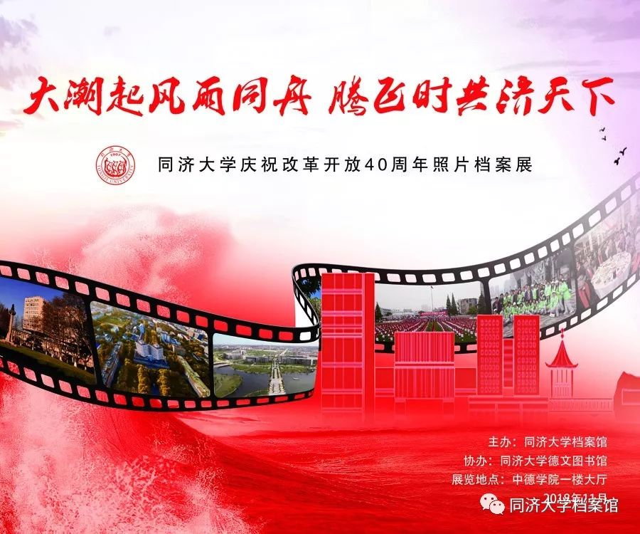11月26日上午9:00,“大潮起风雨同舟,腾飞时共济天下——同济大学庆祝改革开放40周年照片档案展”将在中德学院一楼大厅举行开展揭幕仪式。