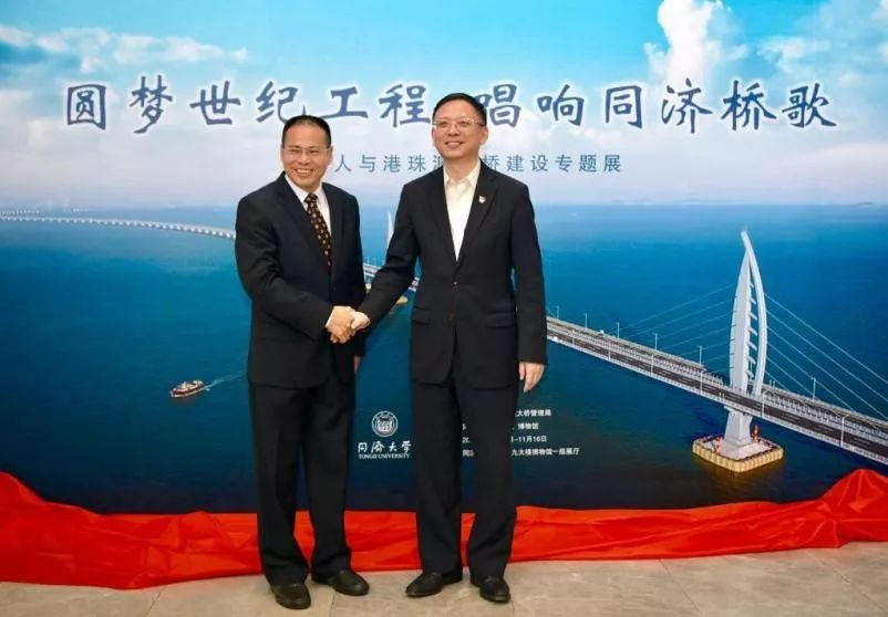 在港珠澳大桥通车一周年之际,10月29日,由同济大学和港珠澳大桥管理局主办、同济大学档案馆和博物馆承办的“圆梦世纪工程 唱响同济桥歌——同济人与港珠澳大桥建设专题展”,在同济大学博物馆揭幕。整个展览通过120幅展板、420余张图片、39件(套)实物,系统回顾了港珠澳大桥的建设历程,集中展示了包括师生、校友在内的一大批同济人为港珠澳大桥建设做出的重大贡献。