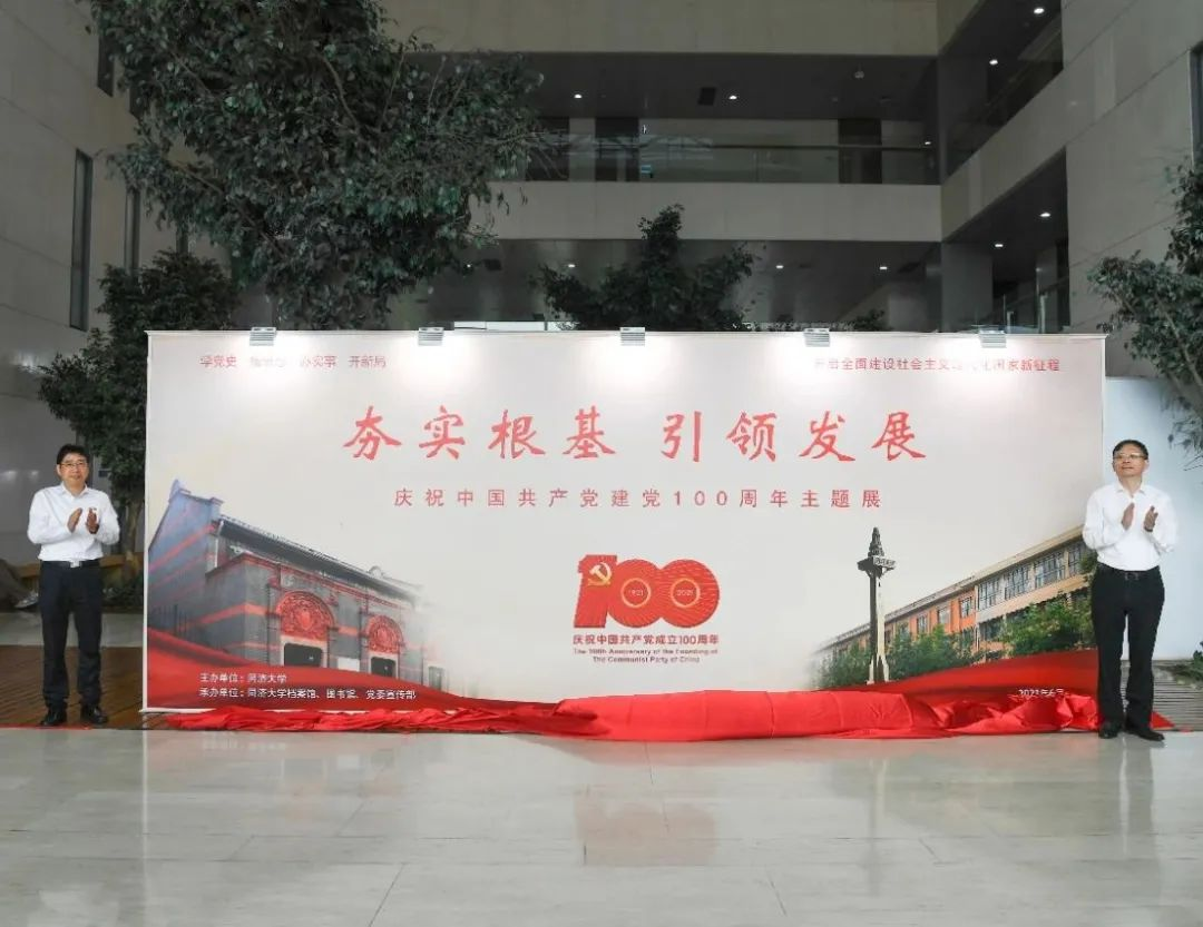 6月30日下午,“夯实根基 引领发展——庆祝中国共产党建党100周年主题展”在四平路校区衷和楼大厅揭幕。主题展以丰富翔实的档案资料和党建素材,深情回望党波澜壮阔的百年画卷,全面展示同济大学在党的领导下不断发展壮大的历程。这是学校庆祝建党百年、推动党史学习教育走深走实的又一项重要活动。
