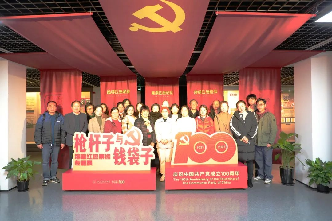 为深入贯彻落实党的十九届六中全会精神,认真贯彻学校推动党史学习教育走深走实的部署要求,11月23日下午,档案馆组织全馆人员前往上海财经大学档案馆(校史馆、博物馆)参观“枪杆子与钱袋子——馆藏红色票据专题展”,聆听党的百年故事,传承党的红色基因。