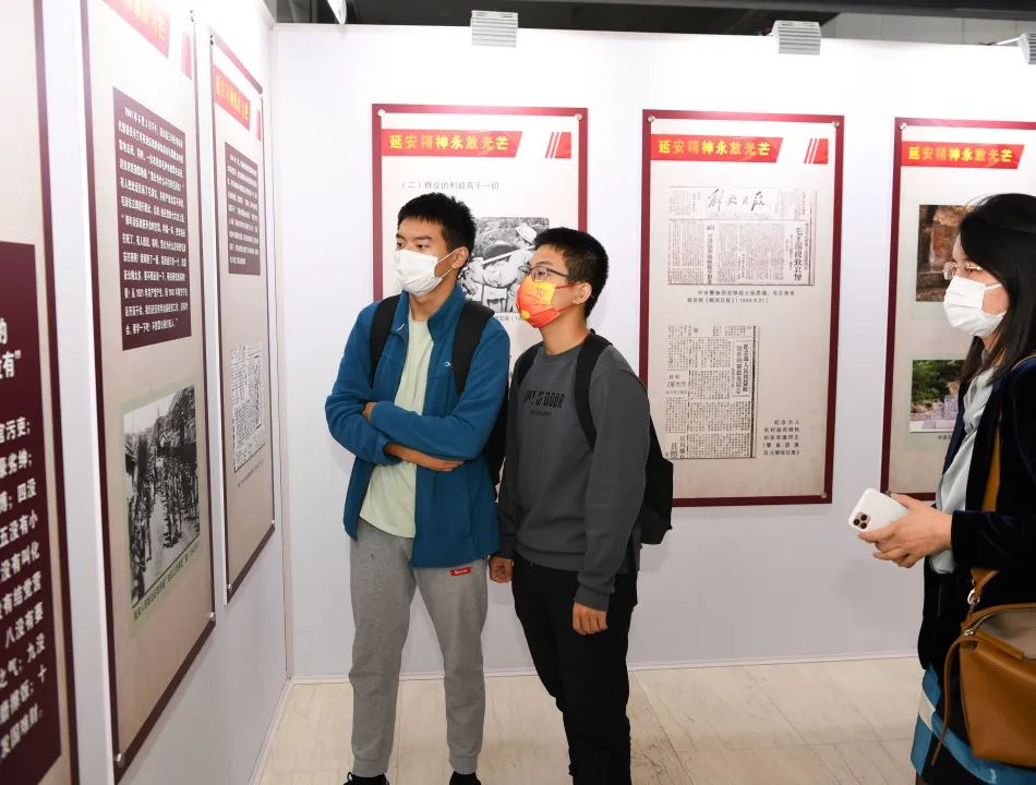 10月17日下午,由同济大学和延安革命纪念馆联合主办,档案馆、图书馆、党委宣传部承办的“延安精神 永放光芒”主题展在四平路校区衷和楼大厅揭幕。该展览是同济大学弘扬伟大建党精神、推进党史学习教育常态化长效化、庆祝党的二十大胜利召开的一项重要活动。