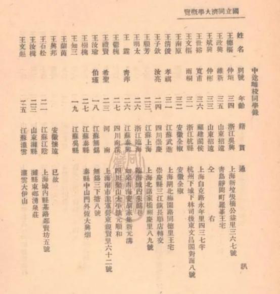 图:《国立同济大学概览》(1934)中的“中途离校同学录”