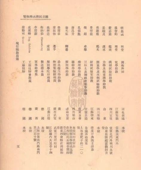 图:《国立同济大学概览(1934年)》中的“现任职员目录”