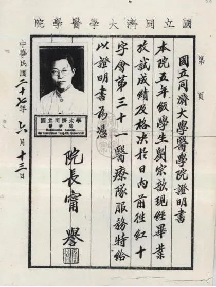 1937年8月13日,日寇大举进犯上海,上海军民奋起抵抗。已提前撤入市区的同济大学立即组建了红十字会临时重伤员医院,并参加了其它多所医院的医疗救治工作,同时积极组织开展抗日宣传和募捐活动。随着形势的日益严峻,学校被迫决定迁往浙江金华,不久后又因日军逼近杭州而再次迁往江西赣州和吉安。其间,医学院部分师生始终坚守在浙江一带的重伤员医院参与伤员救治工作。作为医学院的在校学生,刘宗歆和部分医学院同学不惧危险、勇担使命,积极参与伤员救治工作,直至医学院迁往江西吉安后才开始投入学习。