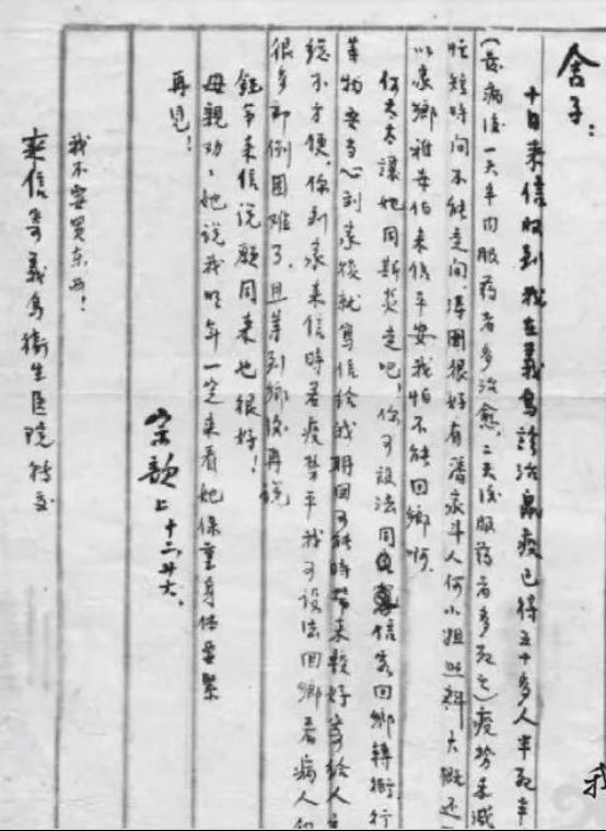 刘宗歆专业而中肯的意见得到了采纳,并迅速付诸实施,义乌地区的鼠疫防治工作也因此得以有效推进。1941年12月26日,刘宗歆在生前写给妻子陈娟的最后一封家书中提到:“我在义乌诊治鼠疫已得五十多人,半死半活(发病后一天半内服药者多治愈,二天后服药者多死亡),疫势未减,很忙,短时间不能走开。”