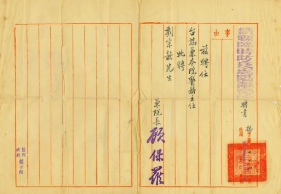 图:1941年6月20日,刘宗歆受聘浙江衢县临时防疫处隔离医院医务主任