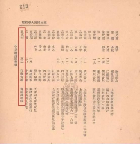 图:1934年《国立同济大学概览》中的“中途离校同学录”
